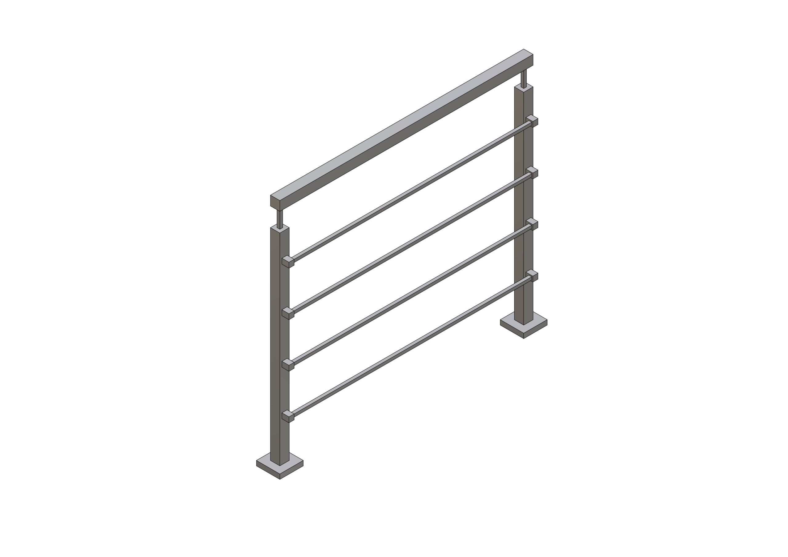 Balustrada nierdzewna, stawiana typu „P” z 4 szt. poziomego wypełnienia wykonana z profili kwadratowych 40×40. (Materiał AISI 304, szlif 320)