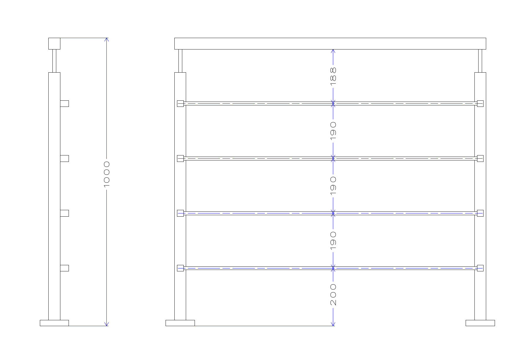 Słupki poprzeczne: profil 12 x 12 x 1 mm