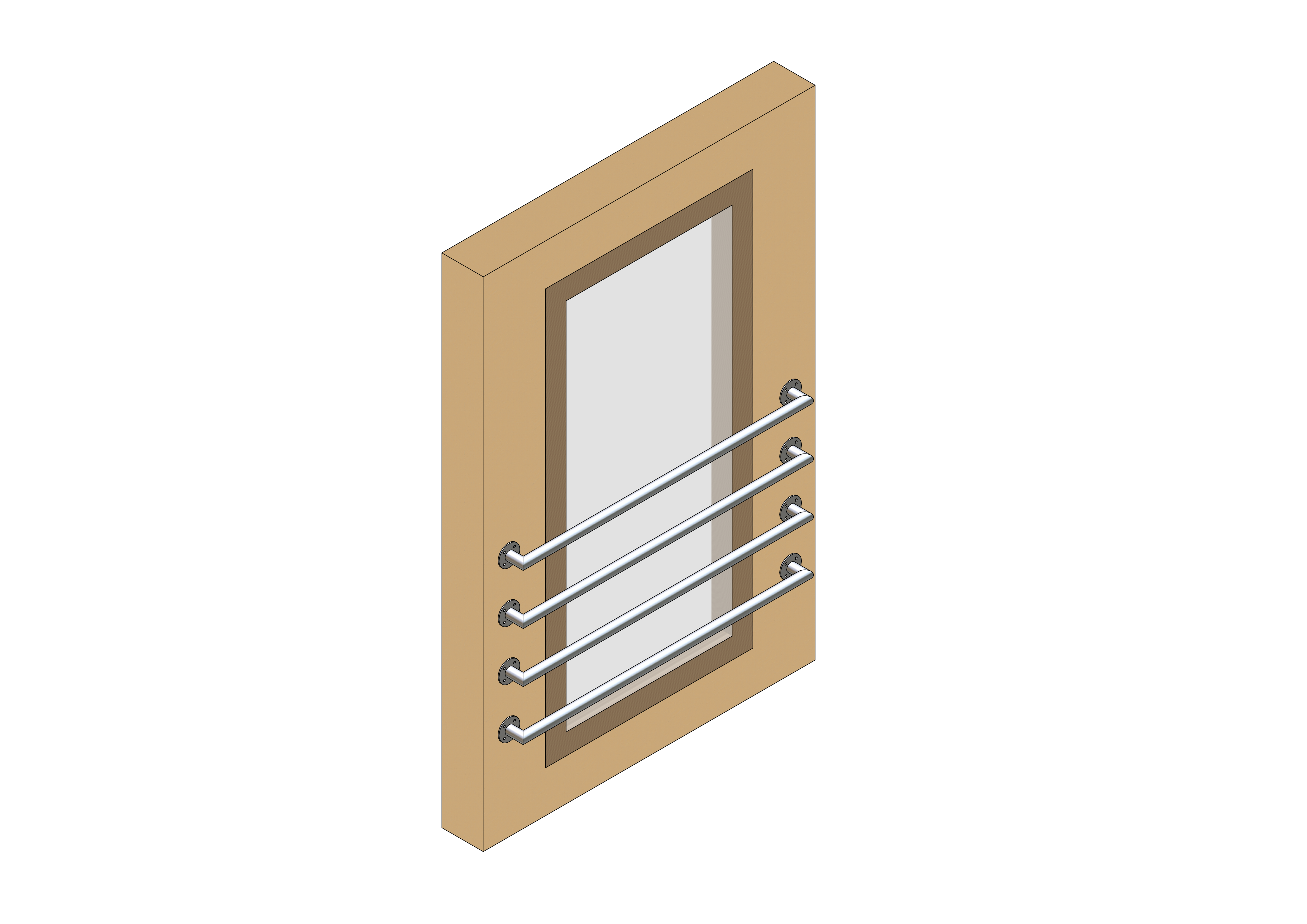 Balustrada Portfenetr Typ 1 z poziomym zabezpieczeniem okna do budynków jednorodzinnych. (D-42,4mm, Materiał AISI 304, szlif 320)