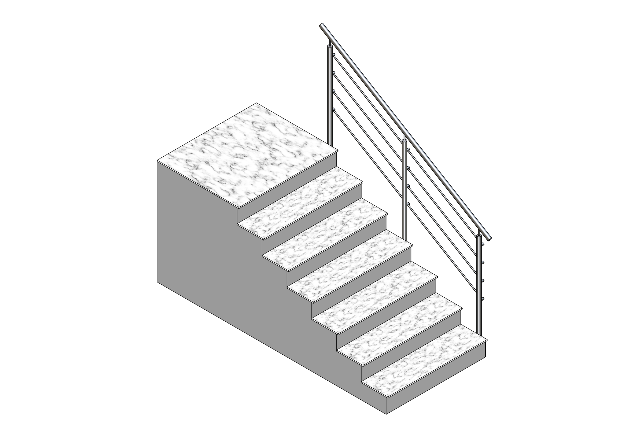 Balustrada nierdzewna, montowana do czoła, schodowa z 4 szt. poziomego wypełnienia, wykonana z rury 42,4 mm. (Materiał AISI 304, szlif 320)